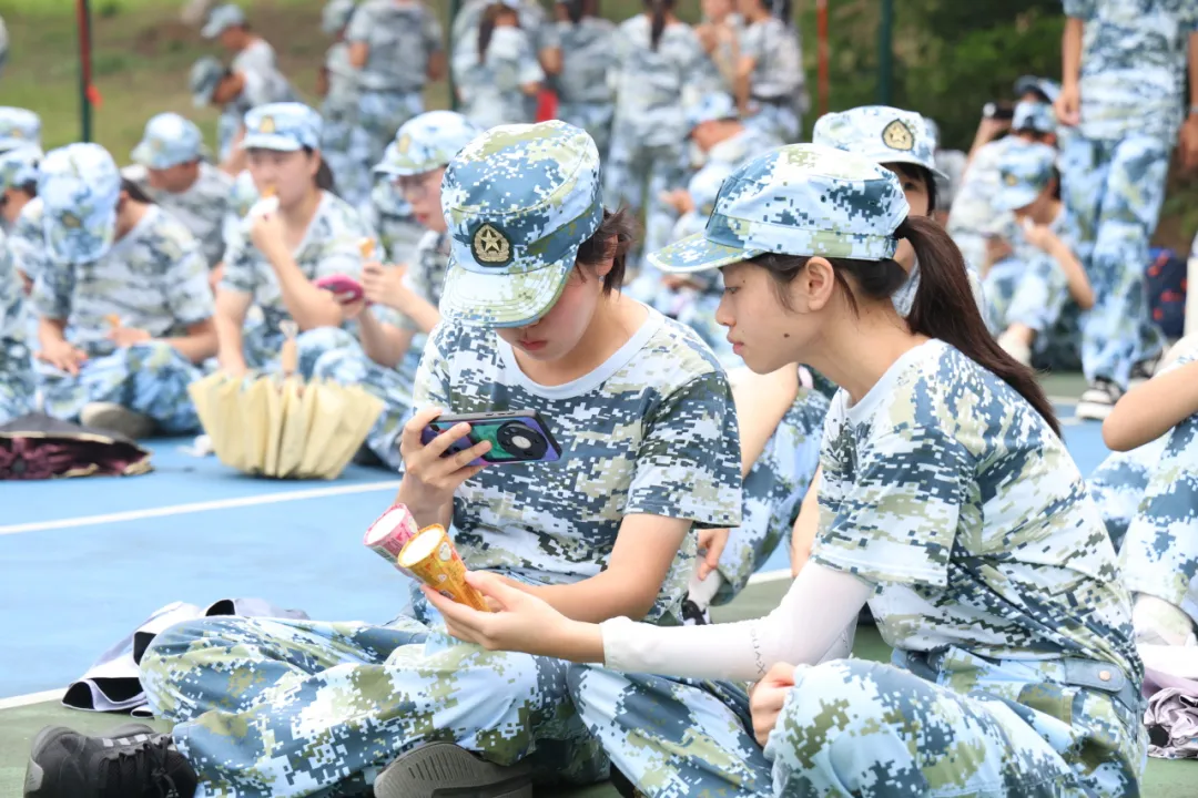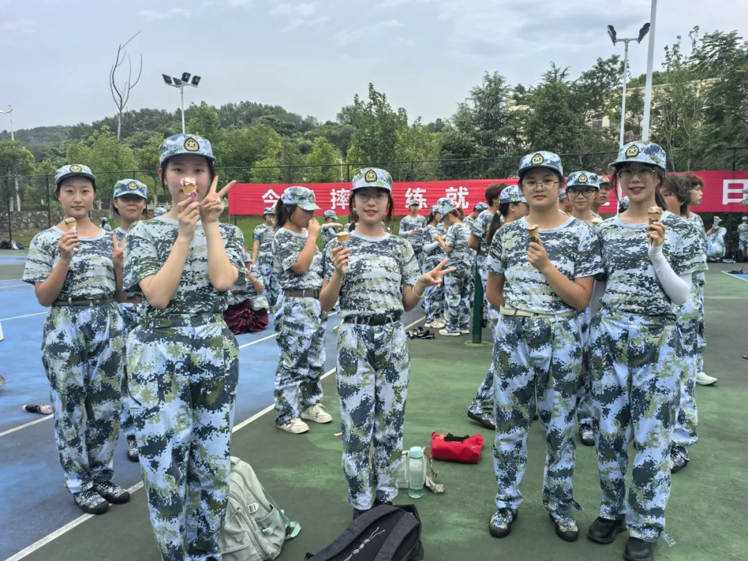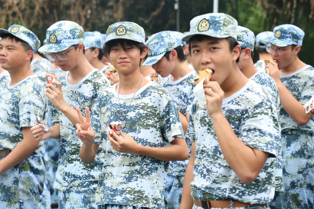 在短暂的训练间隙,学院领导们将一支支“可爱多”冰淇淋送到每一位新生手中。接过冰淇淋的同学们脸上瞬间绽放出灿烂的笑容,训练的疲惫似乎在这一刻烟消云散。