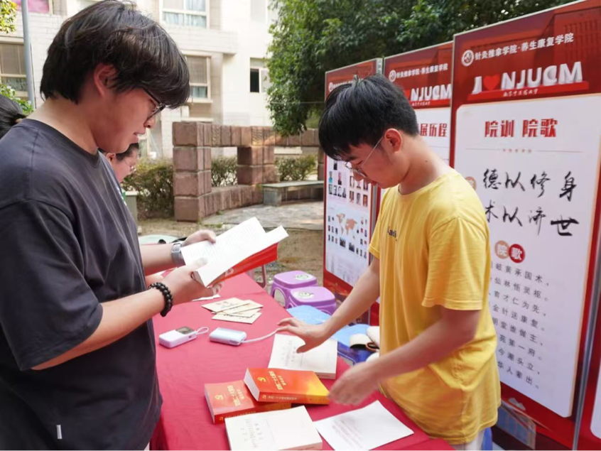 在红色育人环节,泽兰园活动现场特设“共读党史”互动专区,参与者围坐“党史长桌”,在泛黄的文献与珍贵影像中触摸峥嵘岁月,以沉浸式学习强化红色教育。学业支持方面,泽兰园展出“学霸笔记”,条理清晰、重点突出的笔记为学子指引学习方向,程成、高明亮两位专业课老师还亲临现场,从知识点梳理到答题技巧,全方位解答学生关于考试提分的疑问;郁金园则由医学院学工办主任、高校生涯课程导师许可塑开设“职业发展咨询角”,结合临床、科研、健康管理、创业等维度,为学生一对一分析个人优势与职业适配性,助力明晰学业与职业规划。