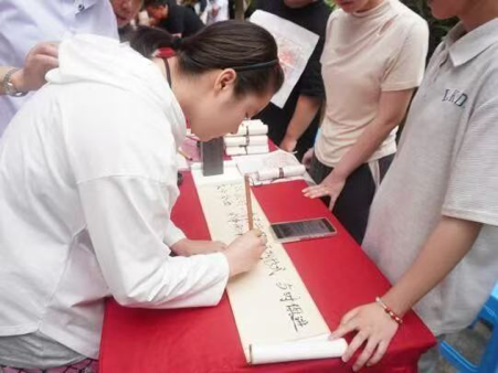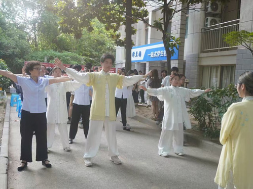 活动还兼顾学子身心需求:泽兰园“针”心为您心灵驿站前,学子拿起纸笔写下对未来的憧憬或生活烦恼,在倾诉中释放压力、感受温暖;养心社带来的八段锦跟练活动吸引宿管阿姨与学子共同参与,大家整齐列队,在刚柔并济的动作中舒缓身心、增强体质,感受传统健身功法的魅力。