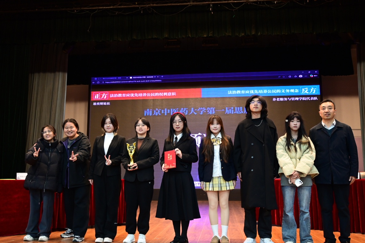 经评委合议,养老服务与管理学院代表队凭借更缜密的论证与沉稳的临场发挥荣获冠军,思弈辩论社代表队获得亚军。许嘉豪同学获评“全场最佳辩手”。党委学生工作部副部长、学生工作处副处长刘云龙为获奖代表颁奖。
